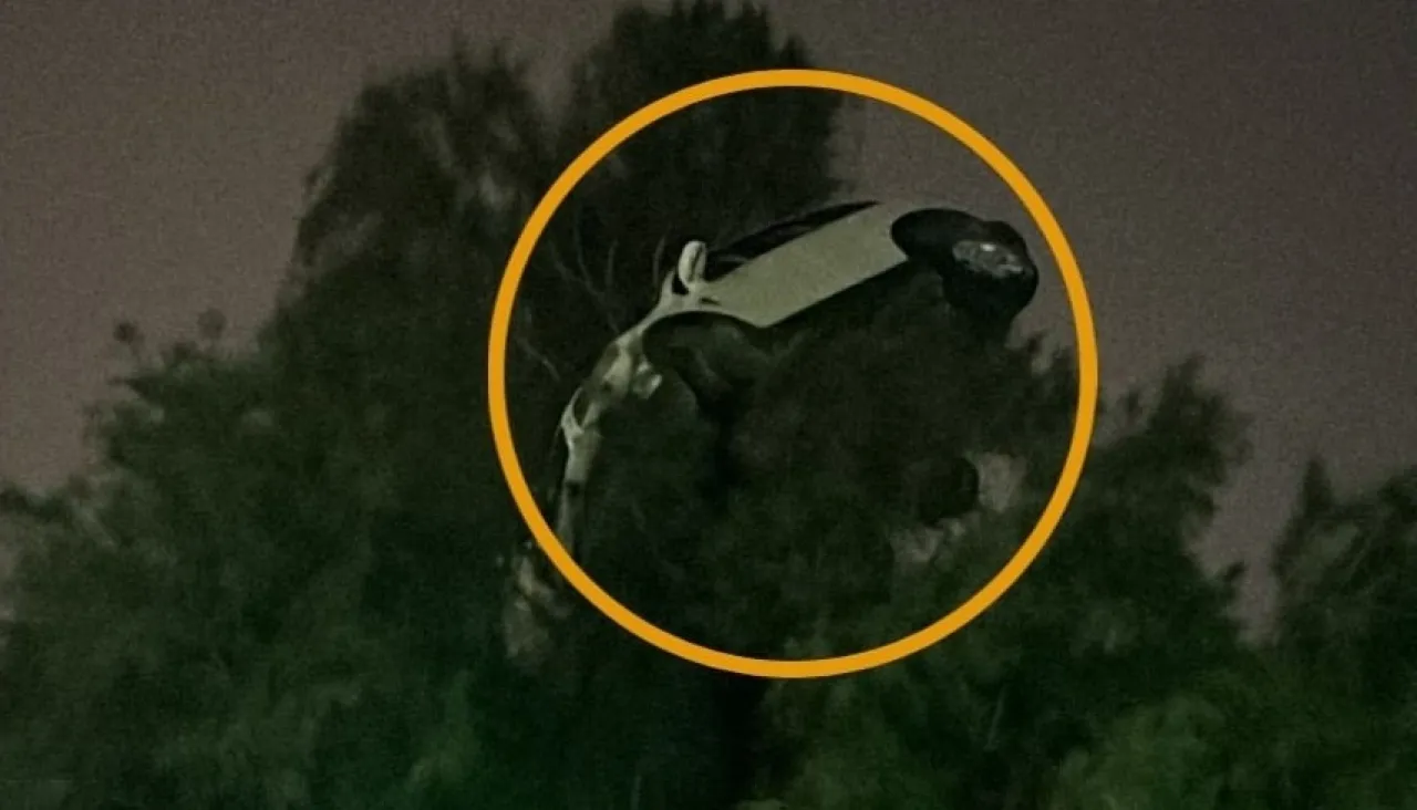 سيارة تطير وتستقر فوق شجرة.. حقيقة حادث غريب يثير ال...