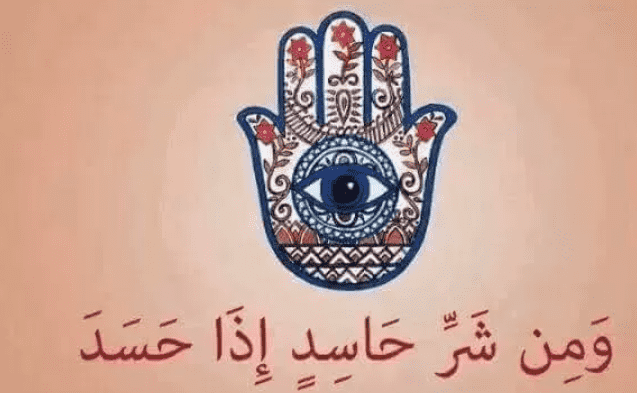 - «قُلْ أَعُوذُ بِرَبّ الْفَلَقِ * مِن شَرّ مَا خَلَقَ * وَمِن شَرّ غَاسِقٍ إِذَا وَقَبَ * وَمِن شَرّ النّفّاثَاتِ فِي الْعُقَدِ * وَمِن شَرّ حَاسِدٍ إِذَا حَسَدَ»، سورة الفلق.