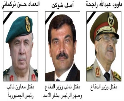 بإستشهاد القادة حسن تركماني وداود راجحه وآصف شوكت وهشام اختيار ،