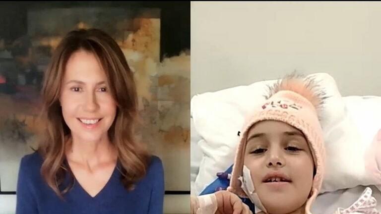 خبرني - أجرت أسماء الأسد عقيلة الرئيس السوري اتصالا عبر الفيديو مع الطفلة السورية شام الشيخ محمد الخاضعة للعلاج في أبو ظبي، متمنية لها السلامة وعبرت عن سعادتها بالحديث معها.