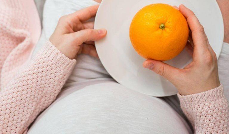 يحتوي البرتقال على نسبة عالية من حمض الفوليك والتي تعمل على تقوية عظام الجنين وبالتالي تحميه من الإصابة بالتشوهات الخلقية .