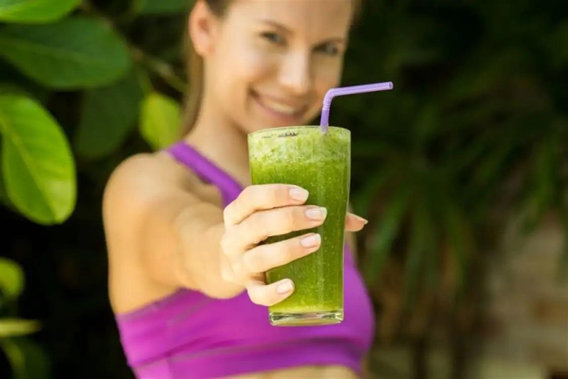 3. العصير الأخضر: قم بخلط الخضروات الورقية مثل السبانخ والكرفس والخيار والملفوف مع الماء أو اللبن النباتي للحصول على عصير خضراء غنية بالمغذيات التي تعزز إنتاج الكولاجين.