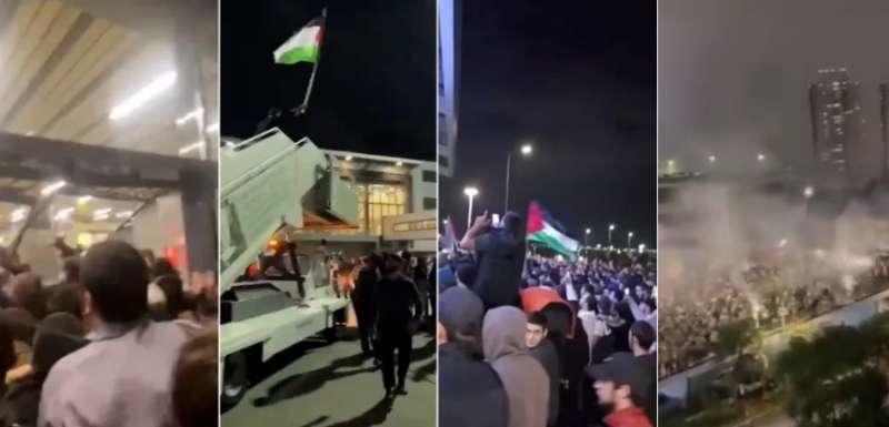 واقتحم المئات من المحتجين المناهضين لإسرائيل مطار محج قلعة فور وصول طائرة قادمة من إسرائيل مساء امس، مما اضطر قوات الأمن الروسية إلى إغلاق المطار وتغيير مسار الرحلات الجوية أثناء إبعاد المحتجين.