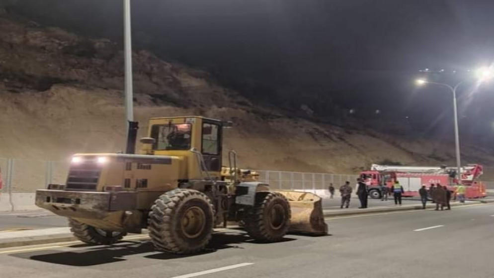 وأضافت، أنه تم وبشكل فوري اجراء تحويلات مرورية على الطريق لضمان دمومية الحركة المرورية، مؤكدة أن العمل جارٍ على ازالة الصخرة بالتنسيق مع الجهات ذات العلاقة وذلك حفاظا على السلامة المرورية على الطريق لاعادة فتح الطريق امام الحركة المرورية كما كانت عليه.