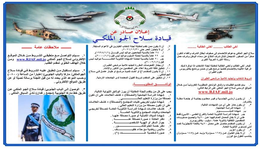 2. سيتم إستقبال من تنطبق عليه الشروط في قيادة سلاح الجو الملكي/ ماركا (الباب الجنوبي)