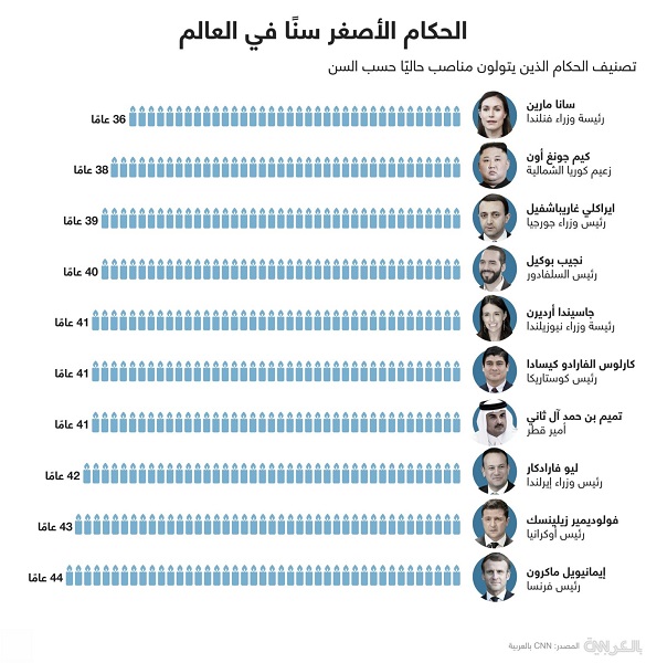 ومن أمير قطر إلى الرئيس الفرنسي مرورا بزعيم كوريا الشمالية ورئيسة وزراء نيوزيلندا، نستعرض أصغر 10 حكام في العالم حاليًا: