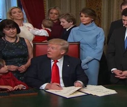 خبرني - نشرت شبكة "CNN" على صفحتها في "فيس بوك" مقطع فيديو خلال توقيع الرئيس الأميركي الجديد دونالد ترامب أول قرار له بشكل رسمي.