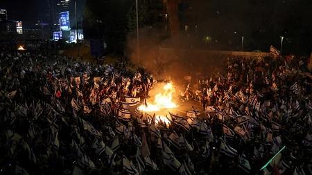 وقالت وسائل إعلام إسرائيلي، إن محتجين اخترقوا حواجز قرب منزل نتنياهو في القدس، واستخدمت الشرطة مدافع المياه لإبعادهم.