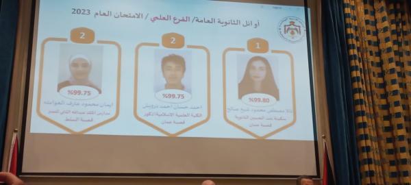 الأولى: نجاح محمد عبد الله بني خالد (99.85%)