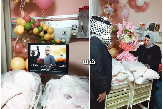 خبرني - رزق الأسير يسري الجولاني بطفلين توأمين عبر نطفة مهربة من سجون الاحتلال.