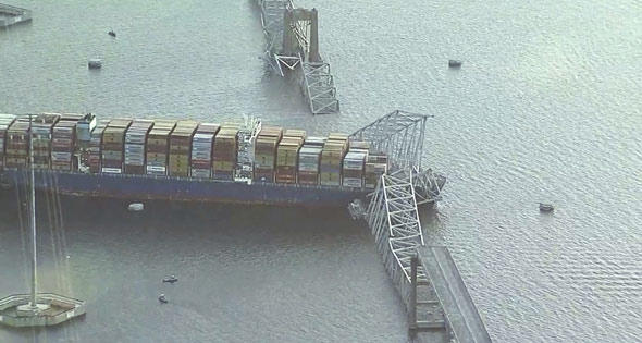ويأتي الخبر بعد حادث مماثل يوم الثلاثاء الماضي في مدينة بالتيمور الأمريكية حيث انهار جسر فرانسيس سكوت كي بشكل جزئي، نتيجة اصطدام سفينة شحن كبيرة بأحد أعمدته.