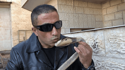 خبرني - تعرض نجل خبير الأفاعي والحيوانات الفلسطيني جمال العمواسي ، للدغة افعى فلسطين في منزله الكائن في مدينة رام الله بفلسطين.