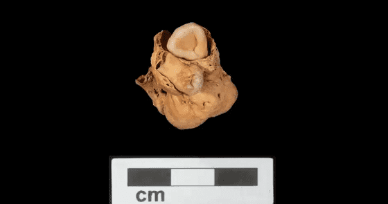 يعد الورم المكتشف عبارة عن كتلة عظمية ذات أسنان، أقدم مثال معروف للورم المسخي، وهو نوع نادر من الورم يحدث عادة في المبيضين أو الخصيتين.