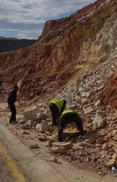 حيث تعاملت الفرق الميدانية في محافظة البلقاء مع انجراف أتربة وحجارة على طريق وادي شعيب أدى إلى إغلاق جزء من الطرق ولفترة بسيطة حيث قامت آليات الأشغال بجرف الأتربة والحجارة المنجرفة وإعادة حركة السير على سعة الطريق وخلال فترة وجيزة.
