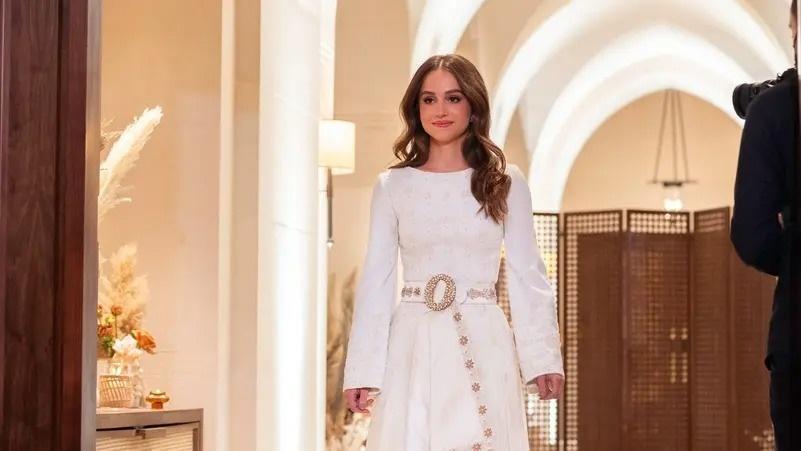 اعتمدت الأميرة إيمان في ليلة الحناء ثوباً مُطرزاً باللون الأبيض حمل توقيع المصممة الأردنيّة ريما دحبور، وقد زيّنته بحزام غطّته تطريزات ذهبيّة كانت الملكة رانيا ارتدته مع ثوب زفافها منذ 30 عاماً.