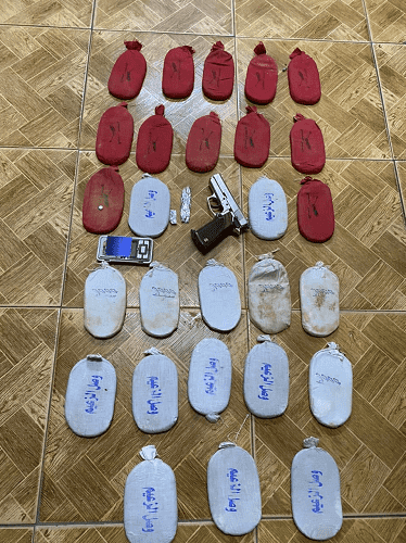 وفي القضية الثانية وبالتنسيق مع مديرية شرطة العقبة ، وبعد جمع المعلومات حول قيام أحد الأشخاص بالاتجار وترويج المواد المخدرة فقد تمت مداهمته، وضُبط بحوزته 16 كفاً من مادة الحشيش المخدرة اضافة الى مجموعة من المستحضرات الطبية غير المرخص تداولها وسلاح ناري .