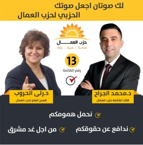خبرني - يخوض حزب العمال الأردن المعركة الانتخابية في شهر ايلول المقبل ، من خلال قائمة قوية يرأسها الدكتور وريادي الأعمال محمد أحمد علي الجراح عن(فئة الشباب) .