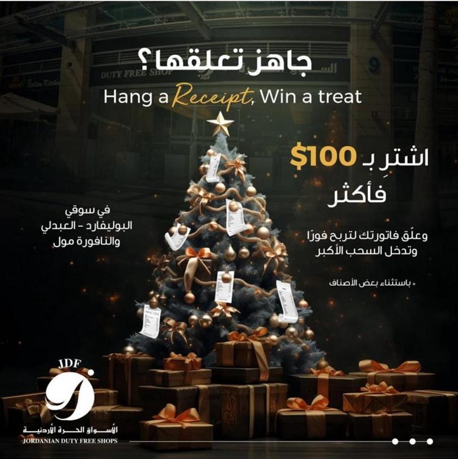 خبرني - أعلنت شركة الأسواق الحرة الأردنية عن إطلاق حملة احتفالية بمناسبة عيد الميلاد المجيد تحت شعار “جاهز تعلقها؟ Hang a receipt – win a treat”، وذلك في سوقي البوليفارد - العبدلي والنافورة مول.