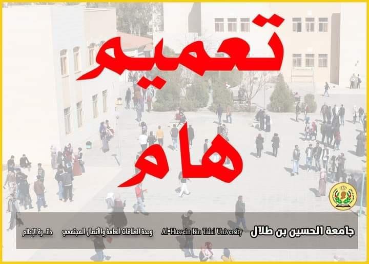 خبرني - قرر رئيس جامعة الحسين بن طلال الاستاذ الدكتور عاطف الخرابشة، ونظرا للظروف الجوية السائدة، وحفاظا على أمن وسلامة الطلبة والعاملين :