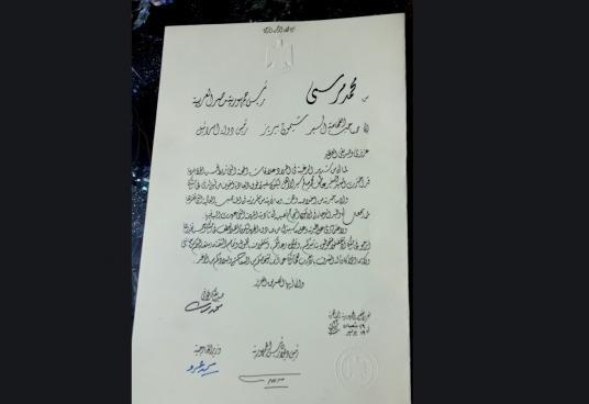 وكان الخطاب الصادر بتاريخ 19 تموز الماضي، مذيلاً بتوقيع الرئيس محمد مرسي رئيس الجمهورية وكذلك وزير الخارجية محمد كامل عمرو ورئيس ديوان رئاسة الجمهورية.