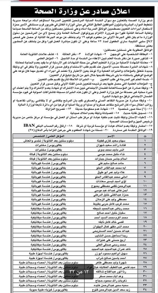 ودعت المرشحين إلى مراجعة مبنى الوزارة، اعتبارا من الساعة 9 صباحا ولغاية الساعة 12 ظهرا، وعلى أن تكون مباشرة العمل فورا، وكل من يتخلف عن الحضور يعتبر مستنكفا.