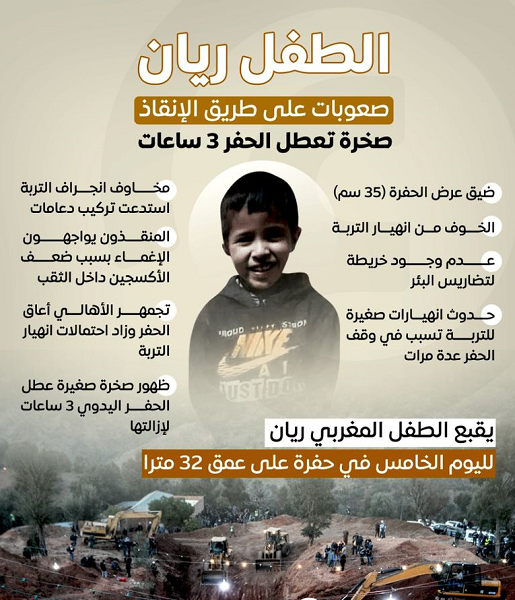ويستعرض الإنفوجراف التالي أبرز الصعوبات التي أعاقت إنقاذ ريان سريعا.