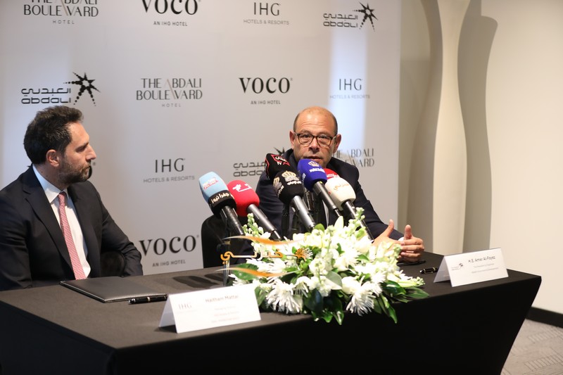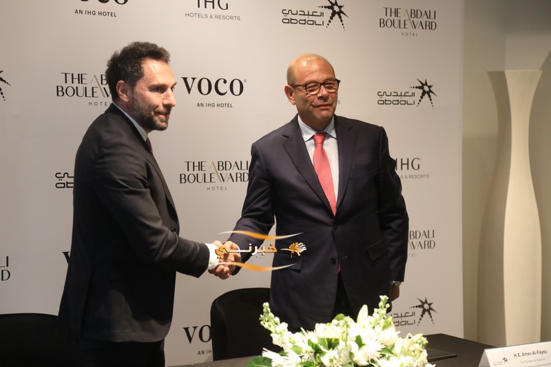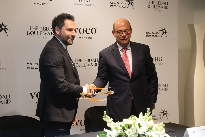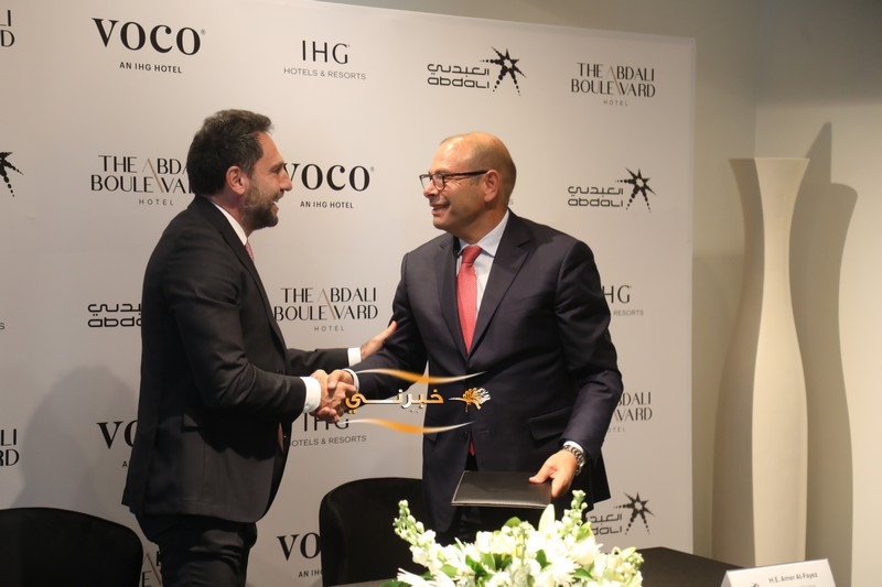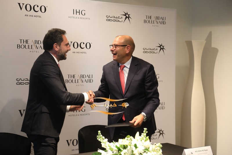 خبرني - يواصل العبدلي مسيرة النجاح والنمو المستدام؛ حيث شهد توقيع اتفاقية بين شركة بوليفارد العبدلي، إحدى شركات مجموعة العبدلي،  ومجموعة فنادق ومنتجعات IHG لإطلاق فندق ڤوكو العبدلي عمّان، وذلك يوم الثلاثاء 7 كانون الثاني الجاري، في مبنى الفندق في البوليفارد، في العاصمة عمّان. ووقع الاتفاقية كلّ من معالي عامر الفايز، رئيس مجلس إدارة شركة العبدلي للاستثمار والتطوير، وهيثم مطر، رئيس مجموعة فنادق ومنتجعات IHG في منطقة الهند والشرق الأوسط وأفريقيا بحضور حكومي رسمي تمثّل بمندوب معالي وزير الاستثمار مثنى الغرايبة؛ أمين عام الوزارة زاهر القطارنة، ومدير عام هيئة تنشيط السياحة الدكتور عبد الرزاق عربيات، إلى جانب ممثلين عن وسائل إعلام محلية.