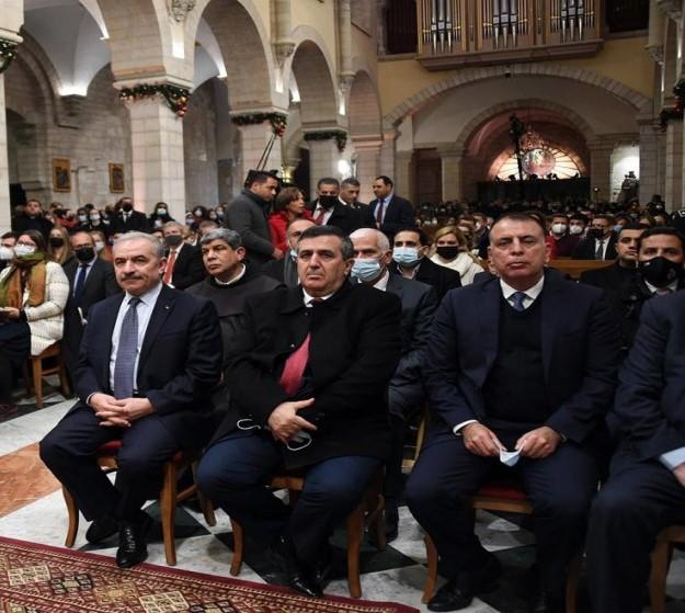 وحضر القداس رئيس الوزراء الفلسطيني محمد اشتية نيابة عن الرئيس محمود عباس وعدد من الشخصيات السياسية الفلسطينية ورجال دين مسيحيون ومسلمون من جميع أنحاء العالم.