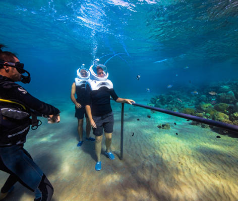 خبرني  - بدأت مجموعة فنادق لوكسوتيل/  فرع العقبة بالتعاون مع نادي الغوص الملكي توفير تجربة المشي تحت الماء داخل البحر.