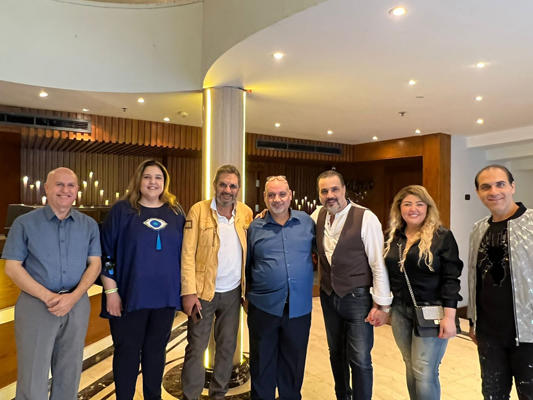 خبرني - كان المنتج محمد المجالي و زوجتة الدكتورة ليلى الزغل وابنه شهم والسيد حسام العلاونة محط اهتمام النجوم المصريين حيث تم استقبالة من قبل المنتج الكبير محسن جابر مالك قنوات مزيكا المصرية وشركة عالم الفن في مكتبة وكذلك شارك المنتج محسن جابر بفرحتة بفرح ابنة شريف الذي اقيم يوم الجمعة على البحر مباشرة بالعين السخنة بمشاركة النجوم احمد سعد والنجمة امال ماهر واخرون وكذلك اقام النجم كمال ابو ريا دعوة عشاء للمجالي وكذلك الفنان والاعلامي طارق علام والفنان مجدي كامل والفنانة مها احمد والفنان ايهاب فهمي ويقيم الليلة الدكتور والسيناريست مدحت العدل حفل عشاء كبير على شرف المنتج المجالي وبحضور ومشاركة كبيرة من النجوم المصريين