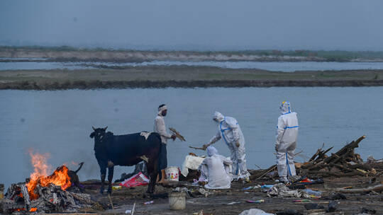 وأفيد في هذا الشأن بأن "تكلفة مراسم حرق الجثث في الهند زادت إلى الضعفين، والفقراء الذين لا تتوفر لديهم مثل هذه التكلفة يرسلون ببساطة جثث من ماتوا بسبب فيروس كورونا لتطفو على طول مياه نهر الغانج. ولجمع الجثث، قامت السلطات الهندية بسد النهر بالشباك" لاصطياد هذه الجثث ورفعها من النهر.