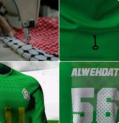 كما يظهر على القميص صورة مفتاح في إشارة الى حق العودة.