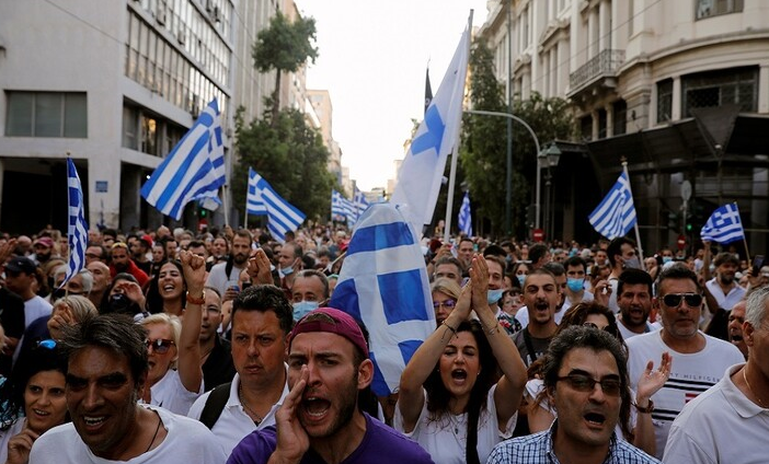 وتجمع نحو ألفي محتج أمام مبنى البرلمان وسط أثينا، بينما ناقش النواب موازنة 2022، التي تتضمن زيادة مقترحة للحد الأدنى للأجور بواقع 2 بالمائة تدخل حيز التنفيذ في 1 يناير.