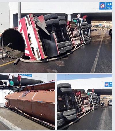 خبرني - وقع اليوم الإثنين حادث انقلاب صهريج على مدخل نفق الصحابة / طريق المطار باتجاه العاصمة عمان.