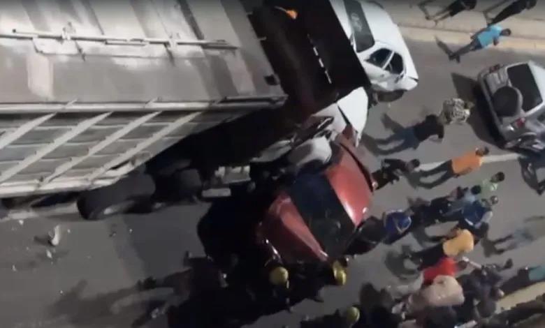 وبحسب الفيديو وقع الحادث بين شاحنة كبيرة وعدد من السيارات،مع أنباء عن وجود وفيات جراء الحادث وفقا لشهود عيان في المكان.