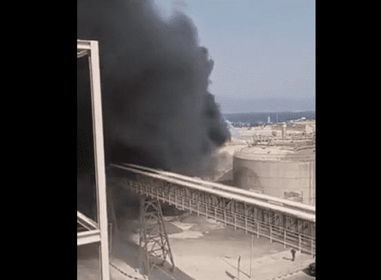 خبرني - اظهر مقطع فيديو متداول نشوب حريق في مستودعات الكبريت داخل المجمع الصناعي التابع لشركة مناجم الفوسفات الاردنية ، مساء اليوم الاربعاء ، في محافظة العقبة جنوبي الاردن .