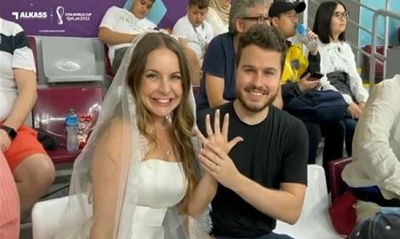 خبرني - في حدث فريد من نوعه.. احتفل زوجان بعرسهما بملعب خليفة الدولي قبل انطلاقة مباراة اليوم الثلاثاء، بين الإكوادور والسنغال، في الجولة الأخيرة، من المجموعة الأولى ببطولة كأس العالم 2022.