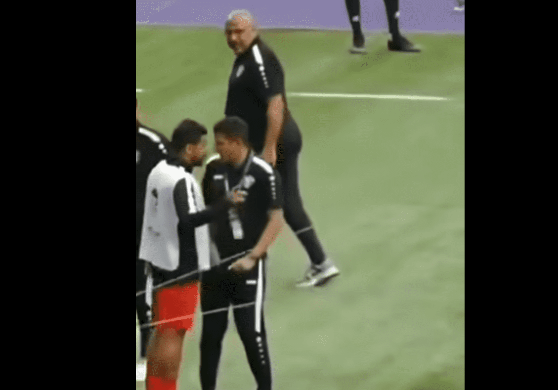 الدردور ذهب ليحتفل بهدف التعادل أمام دكة العراق ما اغضب المدرب حسين عموتة وقام بدفعه، فكانت ردة فعل الدردور قاسية فاشتبك مع 3 أعضاء من الجهاز الفني ومع المدرب.