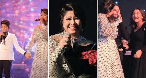 وقالت صاحبة “مشاعر”، وهي تقف وسط ابنتيها على المسرح مازحة: “على فكرة أنا عندي 39 سنة ومش عايزة كلام كتير في الموضوع دا”، لتضيف لاحقاً “انهاردة أمي بتزغرط، قولت لها فرحانة على إيه بقى عندي 42 سنة”.