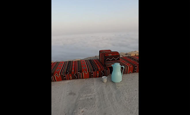 خبرني - بث "مخيم عين لحظة السياحي" في محافظة الطفيلة ، فيديو يظهر المخيم فوق الضباب التي تشكل على مرتفعات جنوبي غرب الأردن، في مشهد يحبس الأنفاس.