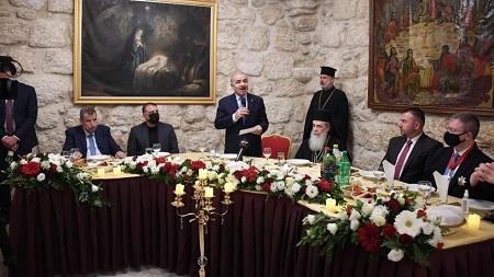 كان اشتية يتحدث في عشاء أعياد الميلاد المجيدة حسب التقويم الشرقي بحضور بطريرك المدينة المقدسة وسائر أعمال فلسطين والأردن ثيوفيلوس الثالث، وممثل الملك عبدالله الثاني الوزير الفراية، ورئيس اللجنة الرئاسية العليا لمتابعة شؤون الكنائس رمزي خوري، وعدد من الشخصيات الرسمية والدينية وأعضاء السلك الدبلوماسي.