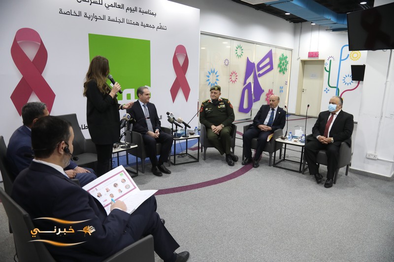 خبرني - بمناسبة اليوم العالمي للسرطان وتحت رعاية وزير الصحة الدكتور فراس الهواري، نظمت جمعية همتنا جلسة حوارية خاصة بعنوان " الجهود الوطنية في مواجهة السرطان: اتحاد – أمان – عدالة" و بمشاركة كل العميد الدكتور يوسف الزريقات مدير عام الخدمات الطبية الملكية والدكتور منذر الحورات مساعد مدير مركز الملك الحسين للسرطان، والاستاذ الدكتور جمال ملحم مدير مستشفى الجامعة الأردنية، والاستاذ الدكتور محمد الغزو مدير مستشفى الملك عبد الله المؤسس، وبدعم من شركة زين.