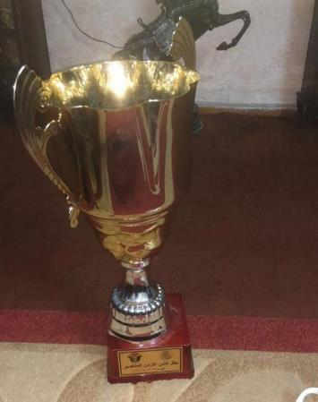 وتعامل لاعبو الفيصلي بحذر أثناء رفع الكأس والتقاط الصور التذكارية، نظراً للكسر في إحدى زواياه العلوية التي كانت تتحرك يمينا ويسارا.