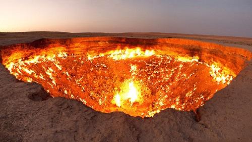 والفوهة الغازية "دارفازا" في صحراء كراكوم لا تزال مشتعلة منذ عام 1971، وأصبحت نقطة الجذب السياحية الرئيسة في تركمانستان، الجمهورية السوفيتية السابقة التي تشكّل واحدة من أكثر الدول انعزالاً في العالم.