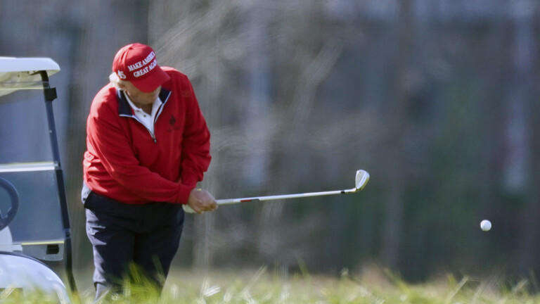ويظهر هذا الفيديو الذي جرى تداوله اليوم الأربعاء على نطاق واسع، ترامب وهو يلعب الغولف مع مجموعة من الأشخاص.