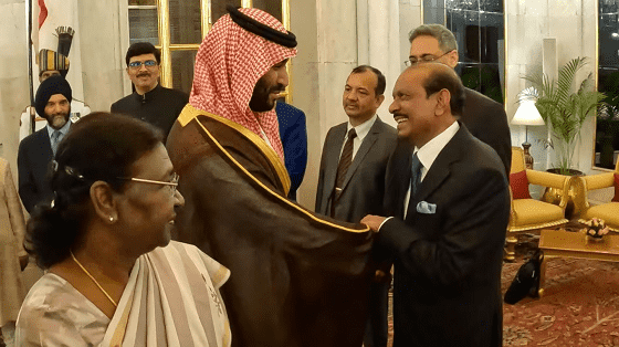 وقال بتعليق على الصور: "يسعدني للغاية أن ألتقي بصاحب السمو الملكي الأمير محمد بن سلمان، ولي العهد ورئيس وزراء المملكة العربية السعودية في راشتراباتي بهافان خلال المأدبة الرسمية..."