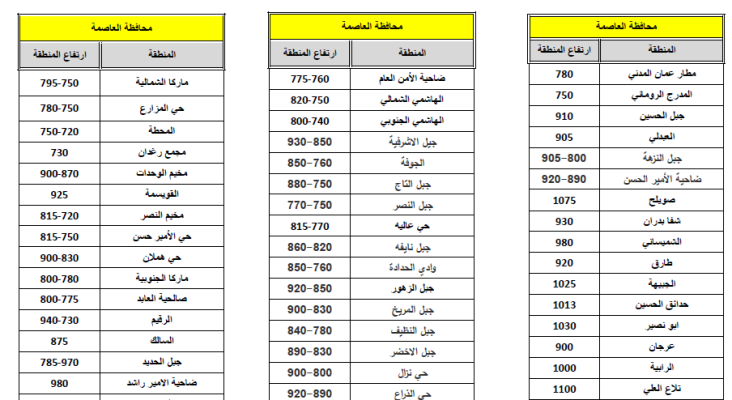تاليا ارتفاع المناطق في الأردن: