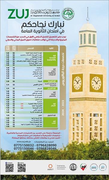 خبرني - جامعة الزيتونة الاردنية تبارك لأبنائها الطلبة الناجحين في امتحان الثانوية العامة، وتتمنى لهم التوفيق والنجاح في الحياة الجامعية.