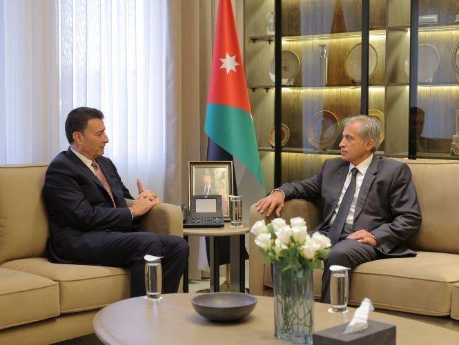 خبرني - استقبل رئيس مجلس النواب أحمد الصفدي، في مكتبه بدار مجلس النواب اليوم الأحد، رئيس الوزراء جعفر حسان الذي قدم التهنئة للصفدي بثقة زملائه النواب بانتخابه رئيسا للمجلس.