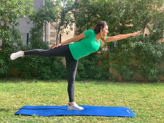اجلسي بشكل مستقيم على بساط؛ القدمان أمامك. يجب مد ساقيك، بطريقة تكونان فيها متباعدتين عرض الكتفين، مع ثني القدمين. استنشق، ومدي ذراعيك أمامك. أثناء القيام بذلك، انحني إلى الأمام، وحاولي لمس أطراف أصابع قدميك.